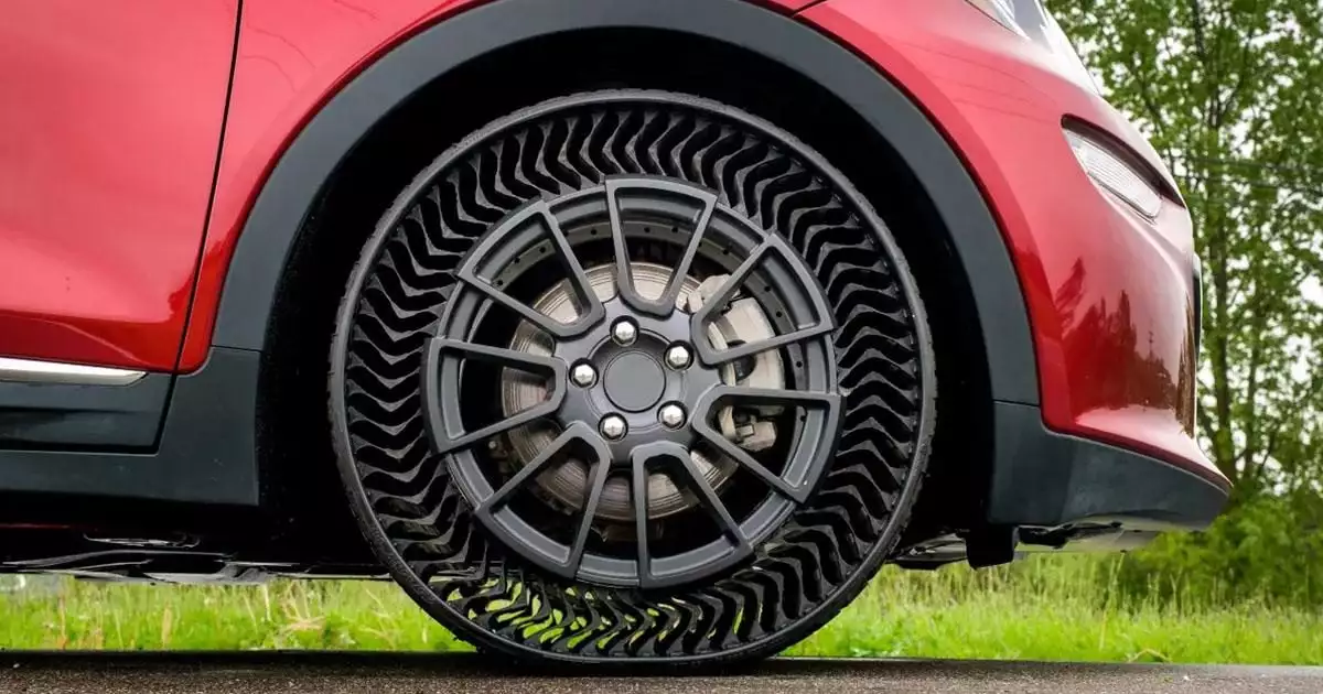 ടയറിനുള്ളിൽ എയർ നിറക്കുന്നതിന് പകരമായി ഫ്ളക്സിബിൾ റബ്ബർ സ്പോക്കുകൾ, ശക്തിയുള്ള കോമ്പോസിറ്റ് മെറ്റീരിയലുകൾ, സോളിഡ് സൈഡ് വാളുകൾ എന്നിവയുപയോഗിച്ചാണ് ഈ ടയറിന് ഒരു സവിശേഷ ഘടന നൽകിയിരിക്കുന്നത്. ഈ ഡിസൈനിന്റെ ഫലമായി എയർലെസ് ടയർ ഘടിപ്പിച്ച വാഹനം ഓടിക്കുന്നവർക്ക് പഞ്ചർ പേടിക്കേണ്ട ആവശ്യമില്ല. മാത്രമല്ല ഓട്ടത്തിനിടെ ടയർ പൊട്ടുന്ന സാഹചര്യവും ഇത് ഒഴിവാക്കും. 100% പഞ്ചർ ഫ്രീ ആണ് എന്നതാണ് എയർലെസ് ടയറുകളുടെ ഏറ്റവും വലിയ ഗുണം. കുഴി നിറഞ്ഞ ഗ്രാമീണ നിരത്തുകളിലും, ദൂരയാത്രകളിലും, ഓഫ്റോഡ് ട്രാക്കുകളിലും ഇത് മികച്ച പെർഫോമൻസ് കാഴ്ചവെക്കും. ഇതിന്റെ ഓപ്പൺ സ്പോക്ക് ഘടന ഫ്യൂചറിസ്റ്റിക് ലുക്കും നൽകുന്നതോടൊപ്പം റോഡുമായി ഏകീകൃത സമ്പർക്കം പുലർത്തുകയും ചെയ്യുന്നു.
