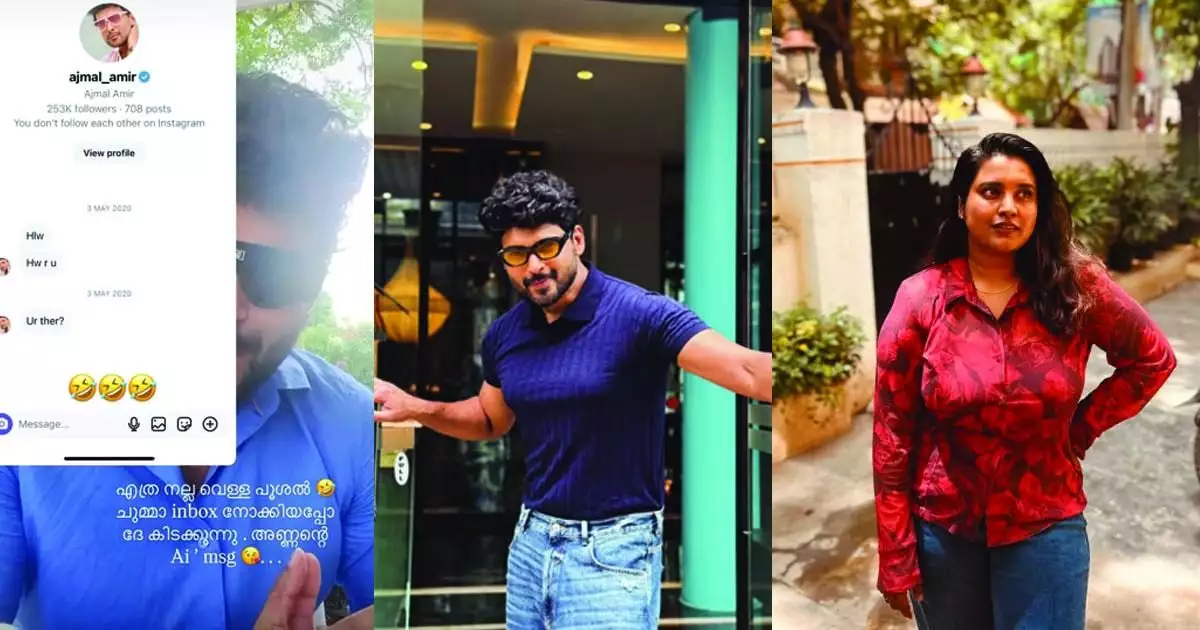 ഇൻസ്റ്റാഗ്രാമിൽ പങ്കുവെച്ച സ്റ്റോറിയിലാണ് റോഷ്‌ന നടന്റെ ചാറ്റ് വെളിപ്പെടുത്തിയത്. ‘എത്ര നല്ല വെള്ളപൂശൽ. ചുമ്മാ ഇൻബോക്സ് നോക്കിയപ്പോൾ ദേ കിടക്കുന്നു അണ്ണന്റെ എഐ മെസ്സേജ്’ എന്ന കുറിപ്പോടെയാണ് താരം അജ്‌മൽ അയച്ച മെസേജിന്റെ സ്ക്രീൻ ഷോട്ട് പങ്കുവെച്ചിരിക്കുന്നത്. അജ്‌മൽ അമീറിന്റെ വെരിഫൈഡ് പ്രൊഫൈലിൽ നിന്ന് തന്നെയാണ് ഈ മെസേജ് അയച്ചിരിക്കുന്നതും.