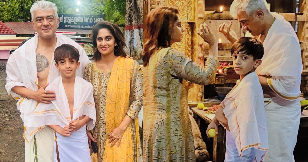 പാലക്കാട് ഊട്ടുകുളങ്ങര ഭഗവതി ക്ഷേത്രത്തില് ദര്ശനം നടത്തി തമിഴ് സൂപ്പര്താരം അജിത് കുമാറും ഭാര്യ ശാലിനിയും മകന് ആദ്വികും. അജിത്തിന്റെ കുടുംബ ക്ഷേത്രമാണ് ഊട്ടുകുളങ്ങര എന്നാണ് പറയപ്പെടുന്നത്. കസവ് മുണ്ടും മേല്മുണ്ടും ധരിച്ച് ദര്ശത്തിന് എത്തിയ നടന്റെ ചിത്രങ്ങള് സോഷ്യല് മീഡിയയില് വൈറലാണ്.