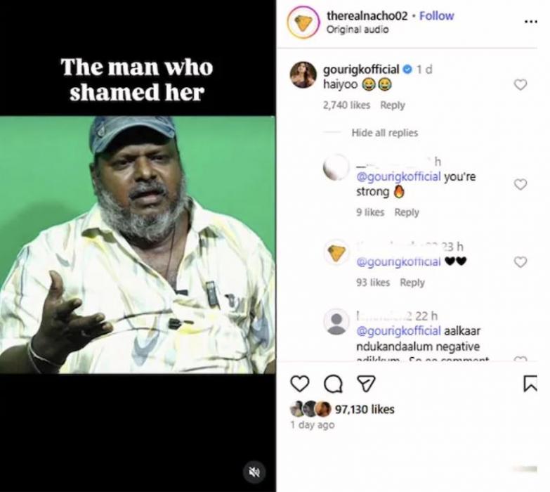ബോഡി ഷെയ്മിങ്ങിനെതിരെ ശക്തമായ നിലപാട് എടുത്ത ഗൗരി, അതേ രീതിയില് മറ്റൊരാളുടെ രൂപത്തെ പരിഹസിക്കുന്നത് ഇരട്ടത്താപ്പാണ് എന്നാണ് വിമര്ശകരുടെ ആരോപണം. തന്റെ ശരീരത്തെ കുറിച്ച് ചോദ്യം ചോദിച്ച യൂട്യൂബറെ അധിക്ഷേപിക്കരുതെന്ന് ഗൗരി നേരത്തെ ഔദ്യോഗിക പ്രസ്താവനയിലൂടെ അഭ്യര്ത്ഥിച്ചിരുന്നു.