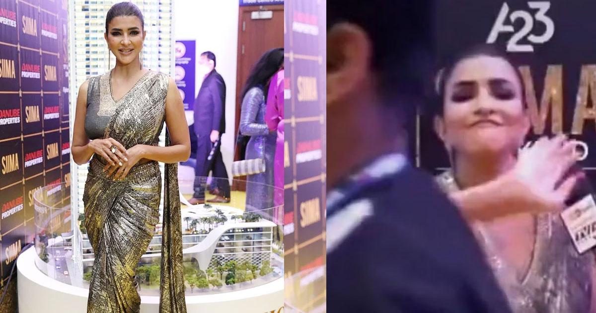 അഭിമുഖത്തിനിടെ ക്യാമറയെ മറച്ച യുവാവിനെ അടിച്ച് തെലുങ്ക് നടി ലക്ഷ്മി മഞ്ചു. ദുബൈയില് നടന്ന സൈമ അവാര്ഡ് ചടങ്ങിനിടെയാണ് സംഭവം. ഇതിന്റെ വീഡിയോ സോഷ്യല് മീഡിയയില് വൈറലായിരിക്കുകയാണ്. സൈമ അവാര്ഡ്സിന്റെ റെഡ് കാര്പെറ്റില് സംസാരിക്കുന്ന ലക്ഷ്മിയെയാണ് വീഡിയോയില് കാണാനാവുക.