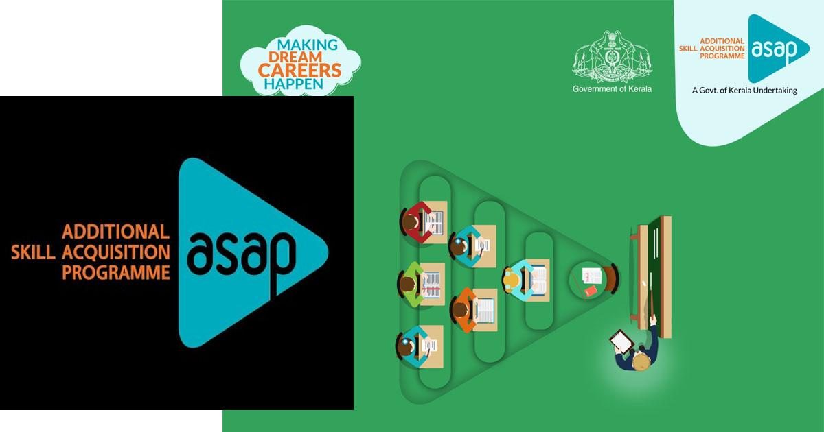 അഡീഷണൽ സ്കിൽ അക്വിസിഷൻ പ്രോഗ്രാം (ASAP) കേരള ഗവൺമെൻ്റിൻ്റെ ഉന്നത വിദ്യാഭ്യാസ വകുപ്പിൻ്റെ ഒരു സംരംഭമാണ്, ഇത് വിദ്യാർത്ഥികളെയും പൊതുജനങ്ങളെയും അവരുടെ തൊഴിൽക്ഷമത മെച്ചപ്പെടുത്തുന്നതിനുള്ള കഴിവുകൾ പരിശീലിപ്പിക്കുന്നതിൽ ശ്രദ്ധ കേന്ദ്രീകരിക്കുന്നു.
