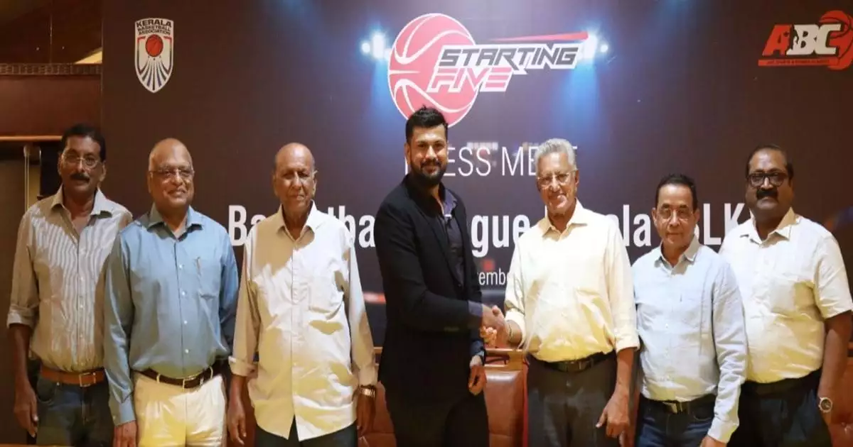 സ്റ്റാർട്ടിങ് ഫൈവ് മാനേജിങ് ഡയറക്ടർ പി. ജേക്കബ്, അനിരുദ്ധ പോളെ ( CEO & ഫൗണ്ടർ, ABCFF ലീഗ് പ്രൈവറ്റ് ലിമിറ്റഡ്) എന്നിവർ സംയുക്തമായി കേരള ബാസ്കറ്റ്ബോൾ അസ്സോസിയേഷന്റെ ( KBA ) സഹകരണത്തോടെ കേരളത്തിൽ ആദ്യമായി ബാസ്കറ്റ് ബോൾ ലീഗ് കേരള ( BLK ) സംഘടിപ്പി ക്കുന്ന വിവരം കൊച്ചിയിൽ വാർത്താ സമ്മേളനതിൽ പ്രഖ്യാപിക്കുന്നു. KBA ലൈഫ് പ്രസിഡന്റ് പി ജെ സണ്ണി, പ്രസിഡന്റ് ജേക്കബ് ജോസഫ്, സെക്രട്ടറി പി സി ആന്റണി, സ്റ്റാർട്ടിങ് ഫൈവ്, പ്രൊമോട്ടർ അജിത് കുമാർ നായർ, ഡയറക്ടർ കോശി എബ്രഹാം എന്നിവർ സമീപം.