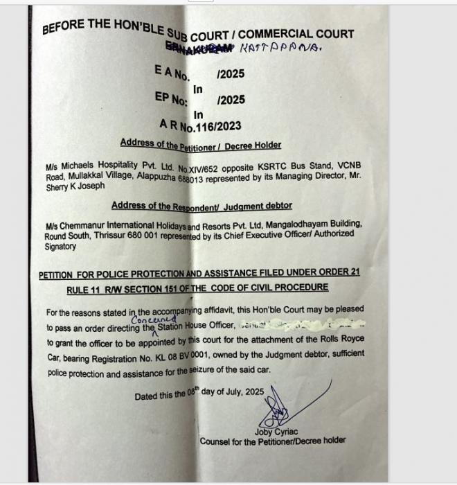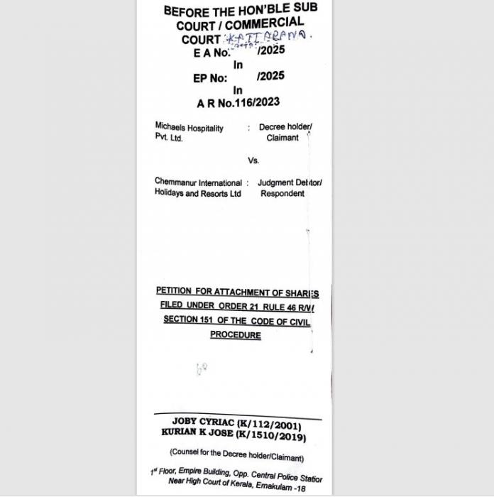 ബോബിയുടെ ചെമ്മണ്ണൂര്‍ ഇന്റര്‍നാഷണല്‍ ഹോളിഡേയ്സ് ആന്‍ഡ് റിസോര്‍ട്ട് പ്രൈവറ്റ് ലിമിറ്റഡുമായി കരാറില്‍ ഏര്‍പ്പെട്ട ഷെറി ജോസഫിന് പ്രതിമാസം 14 ലക്ഷം രൂപയായിരുന്നു കരാര്‍ പ്രകാരം വാടകയിനത്തില്‍ നല്‍കേണ്ടത്. ഇത് നല്‍കാതെ പെരുകിയതോടെ താന്‍ വഞ്ചിക്കപ്പെട്ടുവെന്നു കണ്ടാണ് ഷെറി കോടതിയെ സമീപിച്ചത്. അഞ്ചു കോടിയിലധികം വാടക കുടിശ്ശിക റിസ്സോര്‍ട്ട് ഉടമക്ക് നല്‍കണം എന്ന ജസ്റ്റിസ് കെ കെ ദിനേശന്റെ ആര്‍ബിട്രഷന്‍ വിധി വരുകയും ചെയ്തു. എന്നാല്‍ ജസ്റ്റിസ് കെ കെ ദിനേശന്റെ ആര്‍ബിട്രഷന്‍ വിധിനടപ്പാക്കാന്‍ സാമ്പത്തിക ബുദ്ധിമുട്ടുമൂലം ബോബി ചെമ്മണ്ണൂരിന് കഴിയാത്തതിനാലാണ് ബോബിയുടെ ഉടമസ്ഥതയില്‍ലുള്ള പീരുമേട്ടിലെ സാഗരിക റിസ്സോര്‍ട്ട് കട്ടപ്പന സബ് കോടതി ജപ്തി ചെയ്തത്. ചെമ്മണ്ണൂരിന്റെ ഉടമസ്ഥതയിലുള്ള റോള്‍സ് റോയ്‌സ് കാര്‍ ജപ്തിചെയ്യാനുള്ള അപേക്ഷ കോടതിയ്ക്ക് മുമ്പാകെ എത്തിയപ്പോള്‍ അത് ഈ കോടതിയുടെ ജൂറിസ്ഡിക്ഷന്‍ പരിധിയില്‍ അല്ലെന്നും ബന്ധപ്പെട്ട കോടതിയില്‍ സമര്‍പ്പിക്കുവാനും കട്ടപ്പന കോടതി നിര്‍ദേശിക്കുകയായിരുന്നു. മൈക്കിള്‍ ഹോസ്പിറ്റാലിറ്റി പ്രൈവറ്റ് ലിമിറ്റഡിനും എംഡി ഷെറി ജോസഫിന് വേണ്ടി അഭിഭാഷകരായ ജോബി സിറിയകും, കുര്യന്‍ കെ ജോസുമാണ് കോടതിയില്‍ നിയമനടപടികളുമായി മുന്നോട്ട് പോയത്.