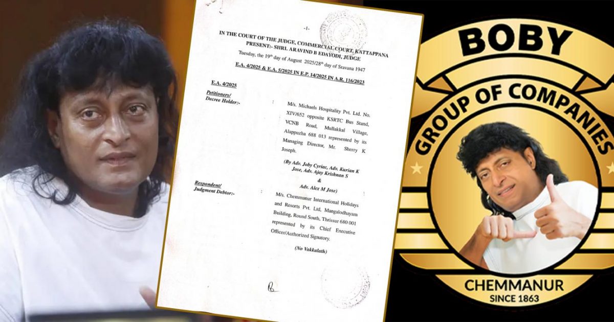 കരാര്‍ ഒപ്പിട്ട ചെമ്മണ്ണൂര്‍ ഇന്റര്‍നാഷണല്‍ ഹോളിഡേയ്‌സ് ആന്റ് റിസോര്‍ട്ട് ലിമിറ്റഡ് കമ്പനി ഇടുക്കി ജില്ലയില്‍ സാഗരിക എന്ന പേരില്‍ ഒരു റിസോര്‍ട്ട് ഏറ്റെടുത്തിരുന്നു വ്യക്തമായതോടെ പണം തരാതിരുന്ന ബോബിയെ ഇവിടെ ക്ലെയിം ഉന്നയിച്ചാണ് ഷെറി ജോസഫ് വീഴ്ത്തിയത്. നിര്‍ണായക സമയത്ത് ഇടുക്കി കോടതിയെ സമീപിച്ചതോടെയാണ് വാടക തിരിച്ചുപിടിക്കാന്‍ ഷെറി ജോസഫിനും അദ്ദേഹത്തിന്റെ ലീഗല്‍ ടീമിനും സാധിച്ചത്. അഞ്ച് കോടി നല്‍കാന്‍ വിസമ്മതിച്ചതിന് ബോബി ചെമ്മണ്ണൂരിന്റെ ഉടമസ്ഥതയിലുള്ള പീരുമേട്ടിലെ സാഗരിക റിസ്സോര്‍ട്ട് കട്ടപ്പന സബ് കോടതി ജപ്തി ചെയ്തു. കോടതി ഈ വസ്തു ലേലത്തില്‍ വെച്ചതിന് ശേഷം വിധിച്ച തുക ഷെറി ജോസഫിന് നല്‍കുകയാണ് ചെയ്യുക. ഒപ്പം ചെമ്മണ്ണൂരിന്റെ ഉടമസ്ഥതയിലുള്ള പഴയ റോള്‍സ് റോയ്സ് കാര്‍ ജപ്തിചെയ്യാനുള്ള അപേക്ഷ ബന്ധപ്പെട്ട കോടതിയില്‍ സമര്‍പ്പിക്കുവാനും കോടതി നിര്‍ദേശിച്ചു.