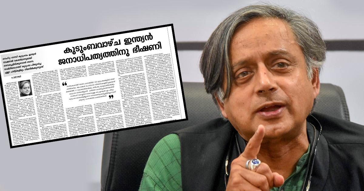 നെഹ്റു കുടുംബത്തിനെതിരെ വിമർശനം ഉന്നയിച്ച് കോൺഗ്രസ് പ്രവർത്തക സമിതി അംഗവും മുതിർന്ന നേതാവുമായ ശശി തരൂർ എംപിയുടെ ലേഖനം. ‘കുടുംബവാഴ്ച ഇന്ത്യൻ ജനാധിപത്യത്തിൻറെ ഭീഷണി’ എന്ന തലക്കെട്ടിൽ മംഗളം ദിനപത്രത്തിൽ എഴുതിയ ലേഖനത്തിലാണ് തരൂരിൻ്റെ വിമർശനം. കുടുംബവാഴ്‌ചയ്ക്ക് പകരം കഴിവിനെയാണ് അംഗീകരിക്കേണ്ടതെന്ന് ലേഖനത്തിൽ തരൂർ പറയുന്നു.