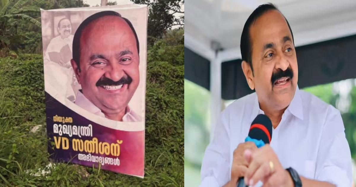 നിയുക്ത മുഖ്യമന്ത്രി വി. ഡി. സതീശന്‍ എന്ന് വിശേഷിപ്പിച്ച് ഫ്‌ലക്‌സ് ബോര്‍ഡ്; കോണ്‍ഗ്രസില്‍ ഫ്‌ലക്‌സ് ബോര്‍ഡ് യുദ്ധം മുറുകുന്നു