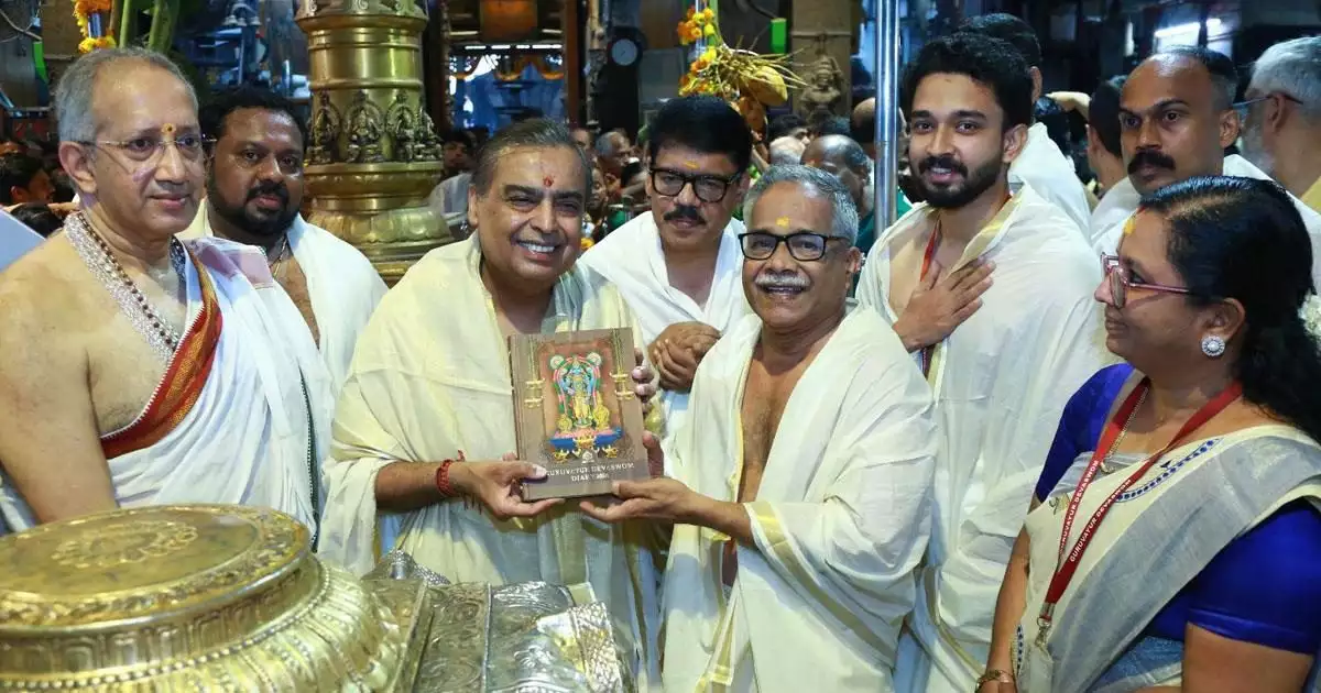 ഗുരുവായൂര് ക്ഷേത്രത്തില് ദര്ശനം നടത്തി റിലയന്സ് ഇന്ഡസ്ട്രീസ് ചെയര്മാന് മുകേഷ് അംബാനി. ഗുരുവായൂരില് ക്ഷേത്ര ദര്ശനം നടത്തി കാണിക്കയര്പ്പിച്ച് മുകേഷ് അംബാനി ദേവസ്വം മള്ട്ടി സ്പെഷാലിറ്റി ആശുപത്രിക്കായി 15 കോടിരൂപയുടെ ചെക്കും ദേവസ്വം അധികാരികള്ക്ക് കൈമാറി. ദേവസ്വം മള്ട്ടി സ്പെഷാലിറ്റി ആശുപത്രിക്കായി ആദ്യ ഗഡു സംഭാവനയായാണ് പതിനഞ്ച് കോടി രൂപയുടെ ചെക്കും കൈമാറിയത്.