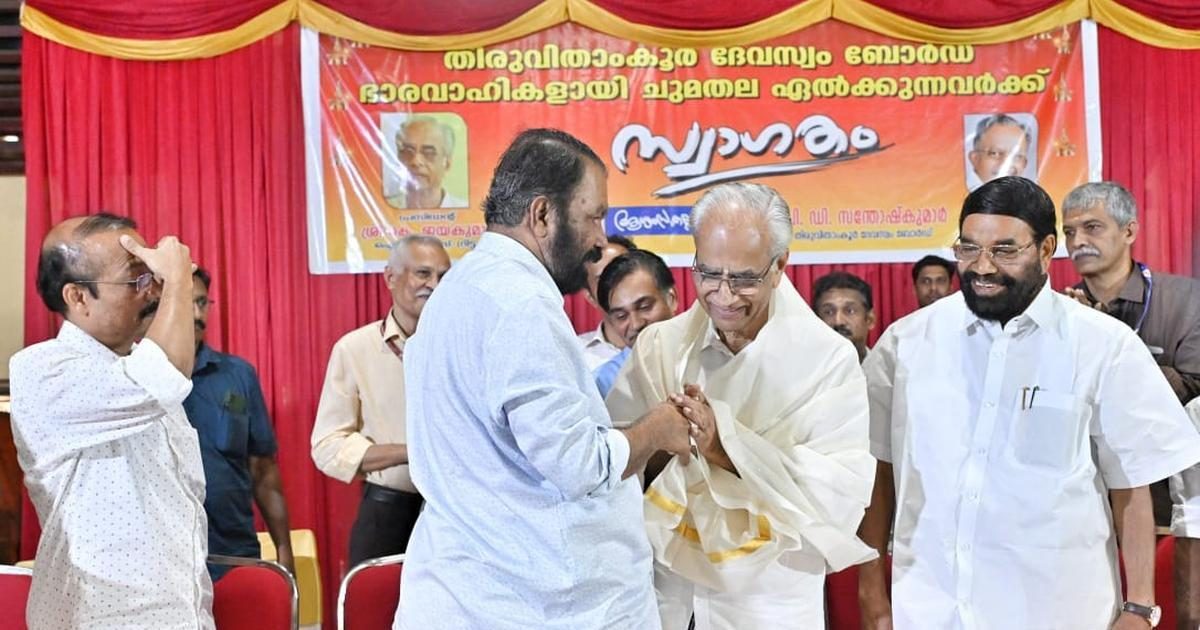 ശബരിമല സ്വര്ണക്കവര്ച്ച വിവാദം കത്തിനില്ക്കുന്നതിനിടെ തിരുവിതാംകൂര് ദേവസ്വം ബോര്ഡ് പ്രസിഡന്റായി മുന് ചീഫ് സെക്രട്ടറി കെ ജയകുമാര് ചുമതലയേറ്റു. ശബരിമലയുടെ കാര്യത്തില് ഭക്തരുടെ വിശ്വാസം വ്രണപ്പെട്ടുവെന്ന കാര്യം വാസ്തവമാണെന്നും ബോര്ഡിന്റെ പ്രവര്ത്തനത്തില് സുതാര്യത കൊണ്ടുവരാമെന്ന പ്രതീക്ഷയുണ്ടെന്നും തിരുവിതാംകൂര് ദേവസ്വം ബോര്ഡ് പ്രസിഡന്റായി ചുമതലയേറ്റ കെ. ജയകുമാര് പറഞ്ഞു. ദേവസ്വം ബോര്ഡ് അംഗമായി മുന് മന്ത്രിയും സിപിഐ നേതാവുമായ കെ രാജുവും സത്യപ്രതിജ്ഞ ചെയ്തു ചുമതലയേറ്റു. പി.ഡി.സന്തോഷ്കുമാര് ആണ് ചുമതലയേറ്റ മൂന്നാമത്തെ അംഗം.