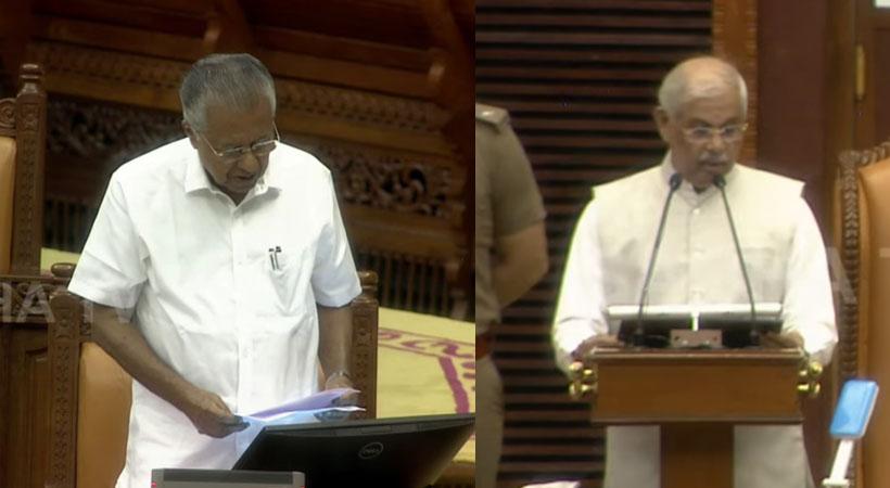 ഗവര്ണര് സഭയെ അഭിസംബോധന ചെയ്ത് നടത്തിയ നയപ്രഖ്യാപന പ്രസംഗത്തില് ചില കൂട്ടിച്ചേര്ക്കലുകളും ഒഴിവാക്കലുകളും വരുത്തിയിട്ടുള്ളത് അംഗങ്ങളുടെയും ശ്രദ്ധയില്പ്പെടുത്തുന്നു എന്ന രീതിയിലാണ് മുഖ്യമന്ത്രി ഗവർണർ വിട്ട ഭാഗം വായിച്ചത്. മന്ത്രിസഭ അംഗീകരിച്ച നയപ്രഖ്യാപന പ്രസംഗത്തിലെ ഖണ്ഡിക 12, 15, 16 എന്നിവയില് ഗവര്ണറുടെ പ്രസംഗത്തില് ചില മാറ്റങ്ങള് വരുത്തിയിട്ടുണ്ട്. ഭരണഘടനയുടെ അന്തഃസത്തയ്ക്കും സഭയുടെ കീഴ്വഴക്കങ്ങള്ക്കും അനുസൃതമായി മന്ത്രിസഭ അംഗീകരിച്ച നയപ്രഖ്യാപന പ്രസംഗമാണ് നിലനില്ക്കുന്നത്. ഗവണ്മെന്റിന്റെ നയപ്രഖ്യാപനമാണ് ഗവര്ണര് സഭയില് നടത്തുന്നത് എന്നതിനാല് മന്ത്രിസഭ അംഗീകരിച്ച 12, 15, 16 ഖണ്ഡികകള് അതേപടി നിലനില്ക്കുന്നതാണെന്നും അദ്ദേഹം പറഞ്ഞു.