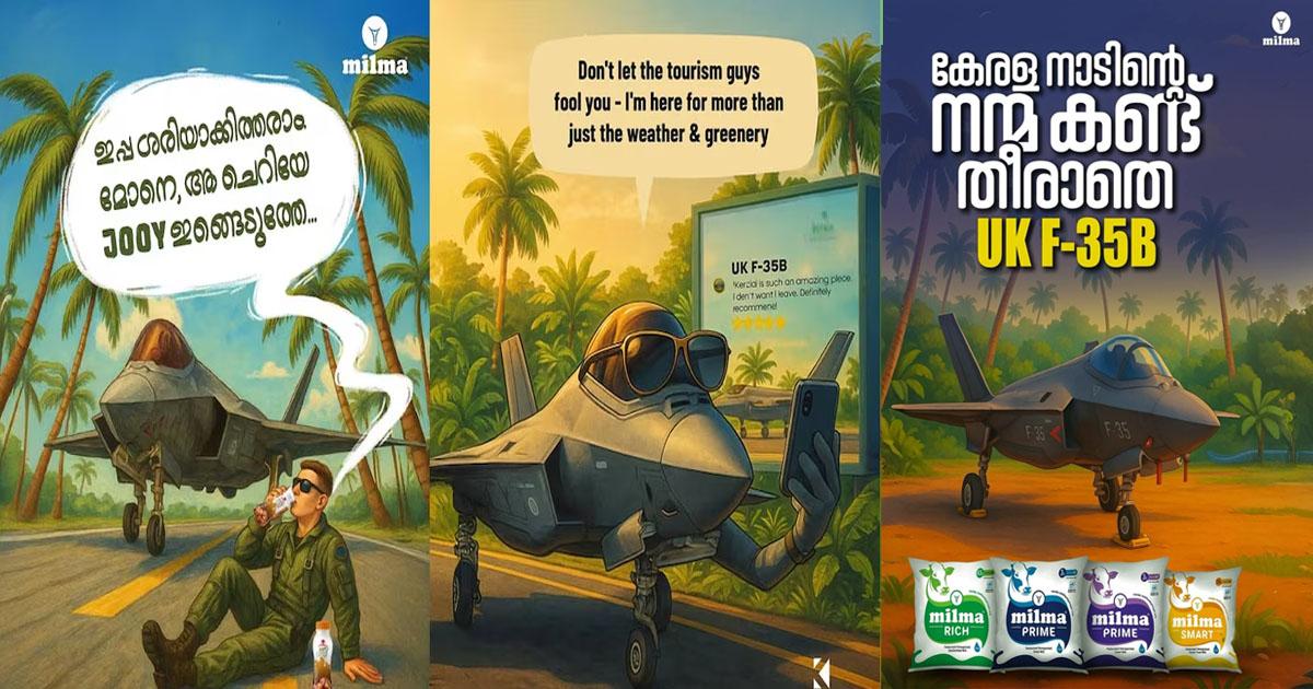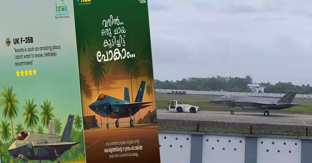 തിരുവനന്തപുരത്തെ അടിയന്തര ലാന്ഡിങിന് ശേഷം ഒരു മാസത്തിന് ശേഷമാണ് എഫ് 35 ബി കേരളം വിടുന്നത്. കേരള ടൂറിസം വകുപ്പടക്കം ഈ സാഹചര്യം കൃത്യമായി പരസ്യത്തിന് മുതലെടുത്തത് ലോകത്തെമ്പാടും വാര്ത്തയായിരുന്നു. കേരളം ഇഷ്ടപ്പെട്ടതിനാല് മടങ്ങി പോകാതെ ഇവിടെ കൂടുന്ന സഞ്ചാരി എന്ന നിലയില് പല ട്രോള് ഗ്രൂപ്പുകളിലും പരസ്യങ്ങളിലും എഫ് 35ബി പ്രത്യക്ഷപ്പെട്ടു.