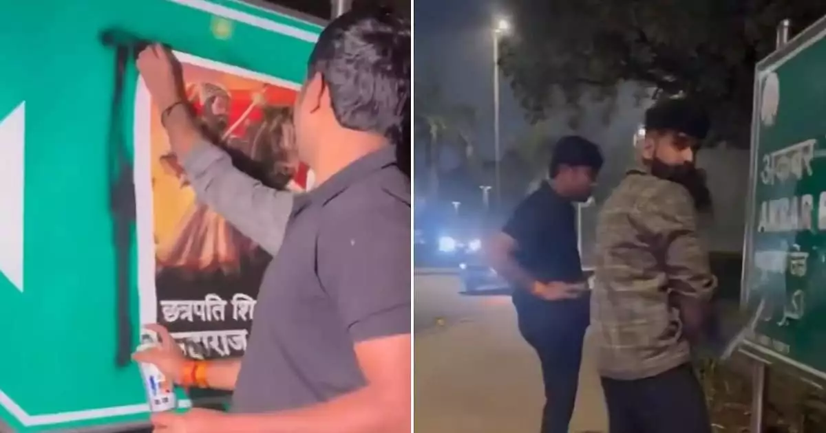 സൈൻ ബോർഡിൽ കരി തേച്ച യുവാക്കൾ ബോർഡിൽ ശിവജിയുടെ ചിത്രങ്ങൾ പതിക്കുകയായിരുന്നു. ഛത്രപതി ശിവജി മാർഗ് എന്ന് എഴുതിയ പോസ്റ്ററുകൾ ഒട്ടിക്കുകയും അതിൽ പാലൊഴിക്കുകയും ചെയ്തിട്ടുണ്ട്. അക്ബർ റോഡ് എന്നെഴുതിയ ബോർഡിൽ അക്രമി സംഘം മൂത്രമൊഴിച്ചതായും ബാബർ റോഡ് എന്ന സൈൻ ബോർഡിൽ കരി തേച്ചതായും ദേശീയ മാധ്യമങ്ങൾ റിപ്പോർട്ട് ചെയ്തു.