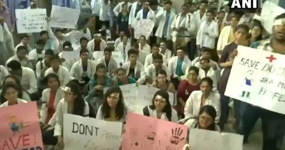 എന്ആര്എസ് മെഡിക്കല് കോളജില് ജോലി ചെയ്യുന്ന പരിഭോഹോ മുഖര്ജി എന്ന ജൂനിയര് ഡോക്ടറെ രോഗിയുടെ ബന്ധുക്കള് ആക്രമിച്ചതിനെ തുടര്ന്നാണ് പശ്ചിമ ബംഗാളില് സംസ്ഥാന വ്യാപകമായി ജൂനിയര് ഡോക്ടര്മാര് സമരം ആരംഭിച്ചത്. ഡോക്ടര്മാരുടെ അശ്രദ്ധ മൂലമാണ് രോഗി മരിച്ചത് എന്നാരോപിച്ചാണ് മരിച്ചയാളുടെ ബന്ധുക്കള് ജൂനിയര് ഡോക്ടറെ മര്ദ്ദിച്ചത്.