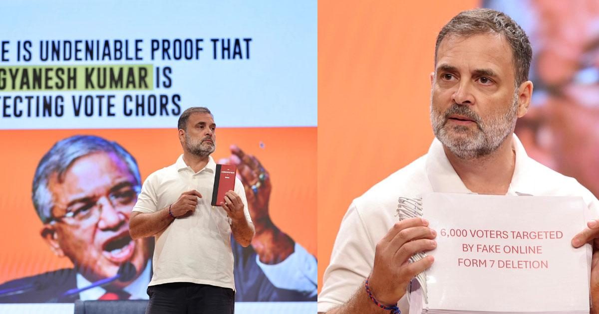 ഗ്യാനേഷ് കുമാർ വോട്ട് ചോരികളെ സംരക്ഷിക്കുകയാണ്. ഗ്യാനേഷ് കുമാർ എന്ത് നടപടി സ്വീകരിക്കും. മഹാരാഷ്ട്രയിലെ രജൗര മണ്ഡലത്തിലും സമാനമായ രീതിയിൽ വോട്ടുകൾ ഒഴിവാക്കി. ഒരാഴ്ചക്കുള്ളിൽ ഗ്യാനേഷ് കുമാർ വിവരങ്ങൾ കർണ്ണാടക സിഐഡിക്ക് കൈമാറണം. വോട്ട് മോഷ്ടാക്കളെ സംരക്ഷിക്കുന്ന പണി നിർത്തണം. അലന്തിൽ 6018 വോട്ടുകൾ ഒഴിവാക്കിയ വിവരമാണ് കിട്ടിയത്. ഒരുപക്ഷേ കൂടുതൽ ഉണ്ടാകാം. ഗോദാബായിയുടെ വിവരങ്ങൾ ഉപയോഗിച്ച് 12 പേരുടെ വോട്ടുകൾ ഒഴിവാക്കിയെന്നും പല മൊബൈൽ നമ്പറുകൾ ഉപയോഗിച്ചാണ് കൃത്യം നടത്തുന്നതെന്നും രാഹുൽഗാന്ധി പറഞ്ഞു.