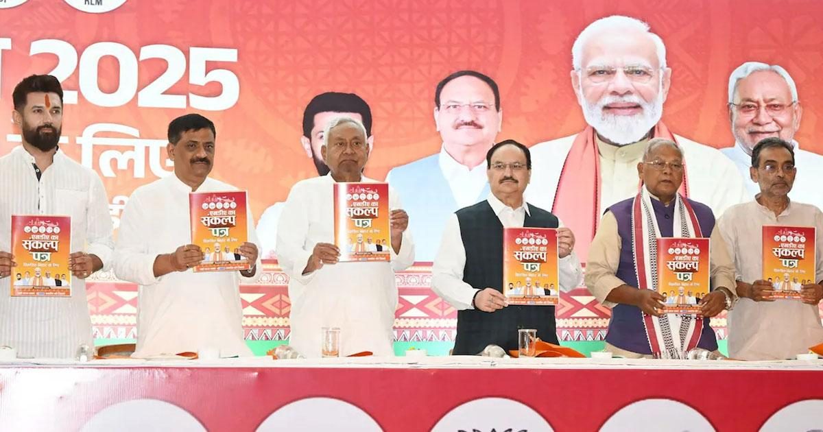 '50 ലക്ഷം പുതിയ വീടുകൾ, ഒരു കോടി സര്‍ക്കാര്‍ ജോലികൾ, സ്ത്രീകൾക്കും കർഷകർക്കും സാമ്പത്തിക സഹായം'; ബിഹാറില്‍ എന്‍ഡിഎയുടെ പ്രകടനപത്രിക പുറത്തിറക്കി