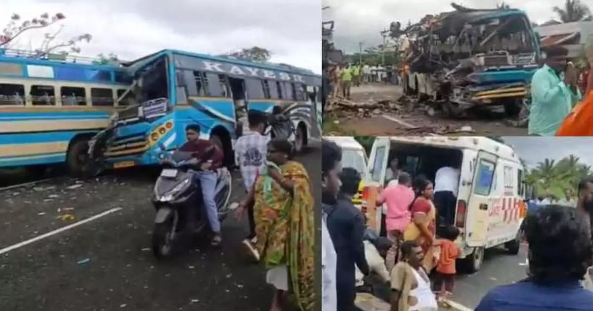 തമിഴ്നാട് തെങ്കാശിയിൽ സ്വകാര്യ ബസുകൾ കൂട്ടിയിടിച്ച് അപകടം. അപകടത്തിൽ ആറ് പേർ മരിച്ചു. 28 പേർക്ക് പരിക്കേറ്റു. മരിച്ചവരിൽ അഞ്ച് പേരും സ്ത്രീകളാണ്. ഇന്ന് രാവിലെയാണ് നാടിനെ നടുക്കിയ അപകടമുണ്ടായത്. മധുരയിൽ നിന്നും ചെങ്കോട്ടയിലേക്ക് പോവുകയായിരുന്ന സ്വകാര്യ ബസും, തെങ്കാശിയിൽ നിന്ന് കോവിൽപ്പെട്ടിയിലേക്ക് പോവുകയായിരുന്ന മറ്റൊരു ബസുമാണ് നേർക്കുനേർ കൂട്ടിയിടിച്ചത്.കൂട്ടിയിടിയുടെ ആഘാതത്തിൽ ഇരു വാഹനങ്ങളും പൂർണ്ണമായും തകർന്നു.