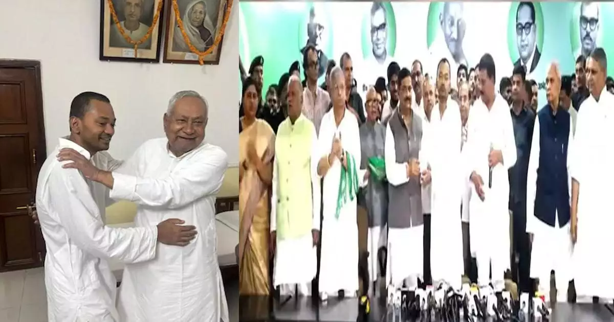 ബിഹാര് മുഖ്യമന്ത്രി നിതീഷ് കുമാറിന്റെ മകന് നിഷാന്ത് കുമാര് ജനതാദള് യുണൈറ്റഡ് (ജെഡിയു)വില് ചേര്ന്ന് ഔദ്യോഗികമായി രാഷ്ട്രീയത്തിലേക്ക് കടന്നു. നിതീഷ് കുമാര് മുഖ്യമന്ത്രി കസേര ബിജെപിയ്ക്ക് കൈമാറി രാജ്യസഭയിലേക്ക് പോകാനുള്ള തീരുമാനം എടുത്തതോടെയാണ് മകന്റെ രാഷ്ട്രീയ പ്രവേശനം ഒരുങ്ങിയത്. പട്നയിലെ പാര്ട്ടി ആസ്ഥാനത്താണ് ബിഹാര് രാഷ്ട്രീയത്തിലേക്ക് ഔപചാരികമായി നിഷാന്ത് കുമാറിന്റെ പ്രവേശന ചടങ്ങ് സംഘടിപ്പിച്ചത്. ദീര്ഘകാലം രാഷ്ട്രീയത്തില് നിന്ന് വിട്ടുനിന്ന നിഷാന്ത്, പിതാവ് രാജ്യസഭയിലേക്ക് നാമനിര്ദ്ദേശം സമര്പ്പിച്ചതിന് ഏതാനും ദിവസങ്ങള്ക്ക് ശേഷമാണ് രാഷ്ട്രീയത്തില് അരങ്ങേറ്റം കുറിച്ചത്.