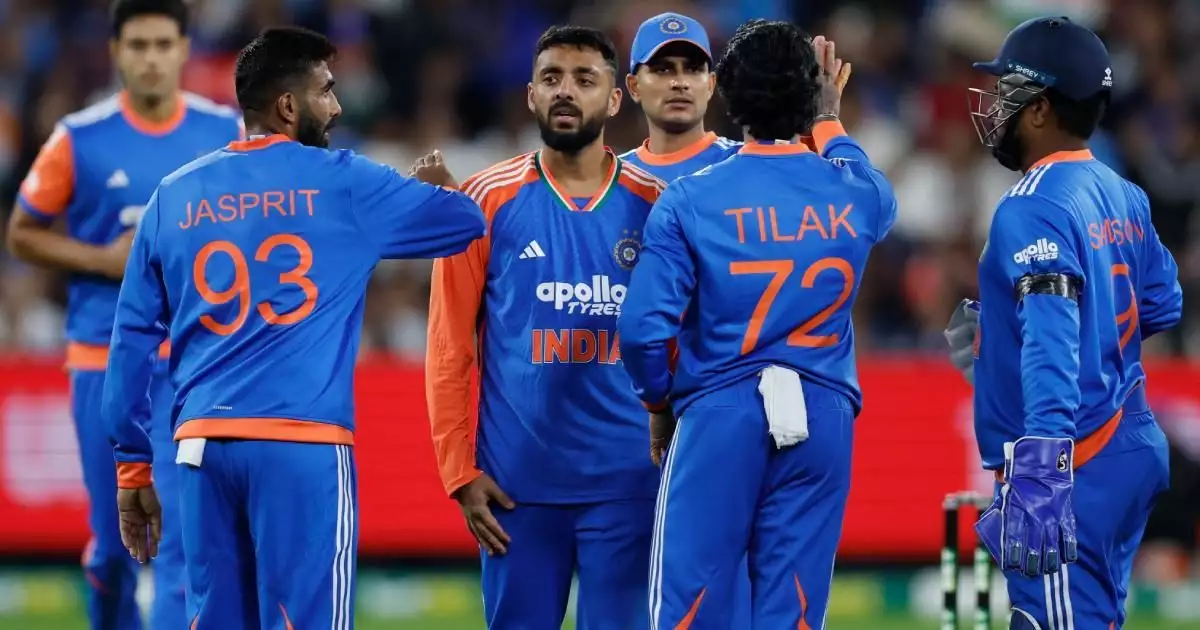 ശുഭ്മൻ ഗിൽ (10 പന്തിൽ അഞ്ച്), സഞ്ജു സാംസൺ (നാലു പന്തിൽ രണ്ട്), സൂര്യകുമാര് യാദവ് (ഒന്ന്), തിലക് വർമ (പൂജ്യം) എന്നിവരാണു പവർപ്ലേ ഓവറുകളിൽ തന്നെ പുറത്തായി. ശിവം ദുബെ നാലു റൺസും അക്സർ പട്ടേൽ ഏഴ് റൺസും കുൽദീപ് പൂജ്യത്തിനും പുറത്തായി.