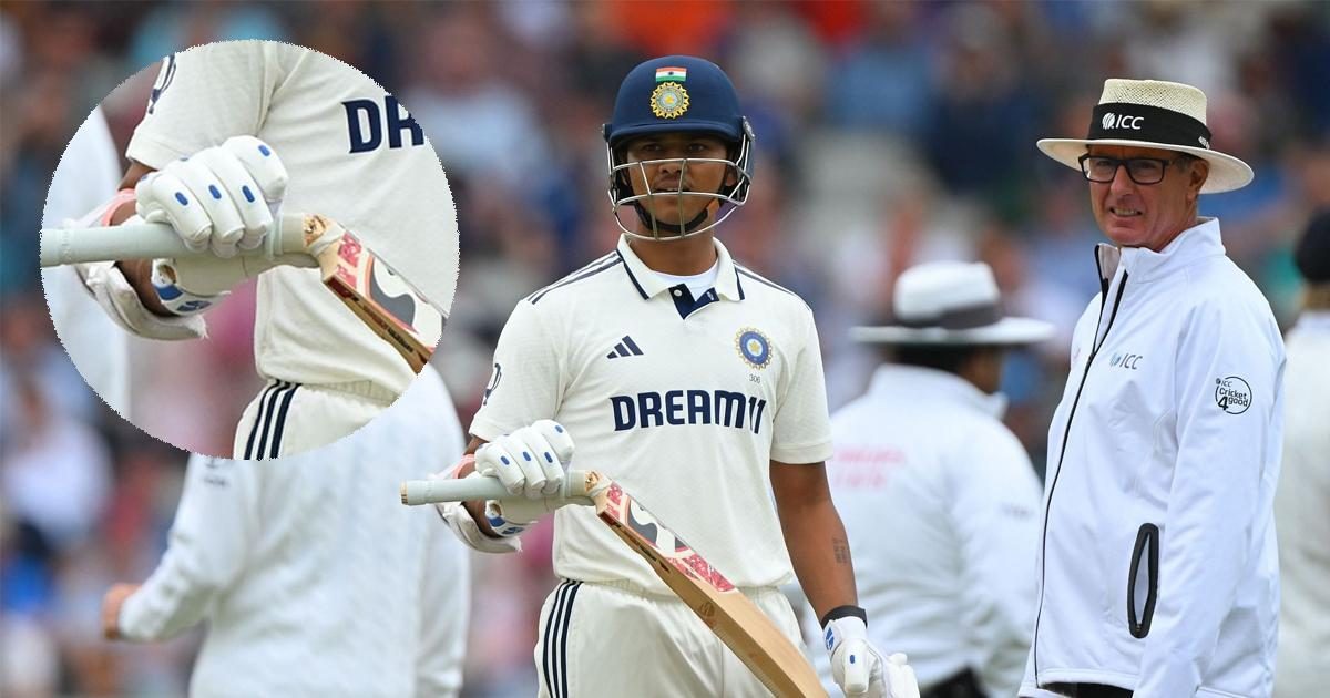 മത്സരത്തിന്റെ ഒമ്പതാം ഓവറിൽ, അധിക ബൗൺസ് ഉള്ള ക്രിസ് വോക്സിന്റെ പന്ത് ജയ്സ്വാൾ പ്രതിരോധിച്ചു. എന്നാൽ പന്ത് പ്രതീക്ഷിച്ചതിലും ഉയരത്തിലെത്തി ജോയിന്റിന് സമീപം ബാറ്റിൽ തട്ടി. ഇതോടെ ഹാൻഡിൽ ഒടിഞ്ഞുതൂങ്ങി.