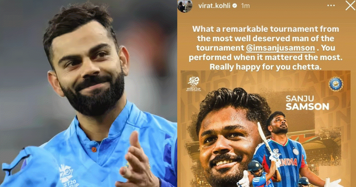 ടൂർണമെന്റിലെ നിർണ്ണായക മത്സരങ്ങളിൽ സഞ്ജു നടത്തിയ പ്രകടനത്തെ കോഹ്ലി പ്രത്യേകം എടുത്തുപറഞ്ഞു. മലയാളികൾ സഞ്ജുവിനെ വിളിക്കുന്ന ‘ചേട്ടാ’ എന്ന വിളിപ്പേര് തന്നെ കോഹ്ലിയും ഉപയോഗിച്ചത് ആരാധകർക്കിടയിൽ നിമിഷ നേരംകൊണ്ട് വലിയ തരംഗമായിരിക്കുകയാണ്. ഒരു ടി 20 ലോകകപ്പ് ടൂർണമെന്റിൽ ഇന്ത്യക്കായി ഏറ്റവും കൂടുതൽ റൺ നേടിയ കോഹ്ലിയുടെ തന്നെ നേട്ടം മറികടന്നാണ് സഞ്ജു ഈ ടൂർണമെന്റിലെ മികച്ച താരമായത്.