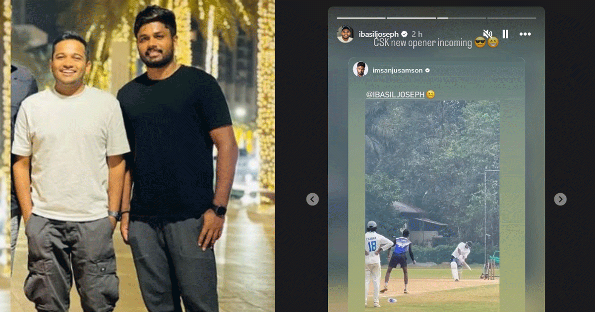 സഞ്ജു സാംസൺ പങ്കുവെച്ച ആ വീഡിയോ മെൻഷൻ ചെയ്ത് ബേസിൽ കുറിച്ച അടിക്കുറിപ്പും ചിരിപടർത്തി. ചെന്നൈ സൂപ്പർ കിങ്സിന്റെ അടുത്ത ഓപ്പണർ വരുന്നുവെന്നാണ് തമാശരൂപേണ ബേസിൽ സ്വയം പുകഴ്ത്തി പറഞ്ഞത്.