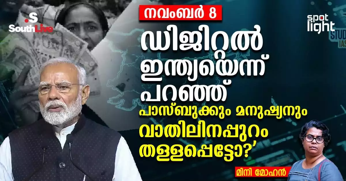 ഡിജിറ്റൽ ഇന്ത്യയുടെ ആദ്യ ചുവടുകൾ കൊച്ചിയിൽ തിളങ്ങിയത് മാളുകളിലും കോഫീഷോപ്പുകളിലുമല്ല, മറിച്ച് കടുത്ത യാഥാർത്ഥ്യത്തിലായിരുന്നു. പെരുമ്പാവൂരിലെ ഫർണിച്ചർ നിർമാണശാലയിലെ മാനുവൽ വർക്കറുടെ കൈയിൽ ചീഞ്ഞ പച്ചനോട്ട് പിടിച്ചുനിന്ന ഒരുനിമിഷം, ബാങ്ക് ഉദ്യോഗസ്ഥൻ പറഞ്ഞു: “ഇത് ഇനി പണം അല്ല. അക്കൗണ്ടിൽ ഇടണം.” അതേ സമയം കൊച്ചിയിലെ മുത്തശ്ശി പണമായി പാലിന്റെ പണം വാങ്ങാൻ തയ്യാറായില്ല, കാരണം “പുതിയ നോട്ടില്ലെങ്കിൽ കൊടുക്കാൻ സർക്കാർ വിലക്കിയിട്ടുണ്ട്” എന്ന് പറഞ്ഞു.