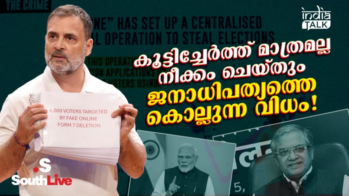 ജനാധിപത്യത്തെ കൊലചെയ്യാന് കൂട്ടുനിന്നയാള് എന്ന പേരിലേക്ക് ഗ്യാനേഷ് കുമാറിന്റെ പേര് ചരിത്രത്തില് അടയാളപ്പെടുത്തുന്ന കാലം വിദൂരമല്ലെന്ന് വ്യക്തമാക്കുകയാണ് വോട്ട് കൊള്ളയുടെ കാണാപ്പുറങ്ങള് ഓരോന്നായി രാജ്യത്തിന്റെ പ്രതിപക്ഷ നേതാവ് തുറന്നുകാട്ടുമ്പോള്.
