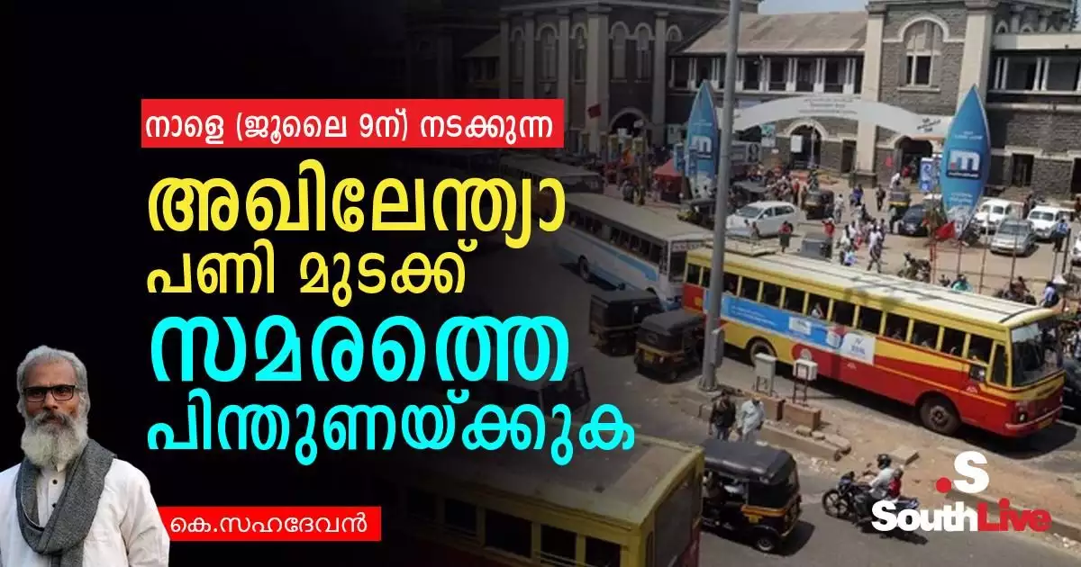 രാജ്യത്തെ പത്തോളം ട്രേഡ് യൂണിയന് സംഘടനകള് സംയുക്തമായി ആഹ്വാനം ചെയ്ത ജൂലൈ 9ന്റെ ദേശീയ പണി മുടക്ക് രാജ്യത്തെ തൊഴില്-കാര്ഷിക-സാമ്പത്തിക മേഖലയില് മോദി ഭരണകൂടം നടത്തുന്ന ജനവിരുദ്ധ നയങ്ങള്ക്കെതിരായ ജനങ്ങളുടെ താക്കീതായി മാറേണ്ടതുണ്ട്.